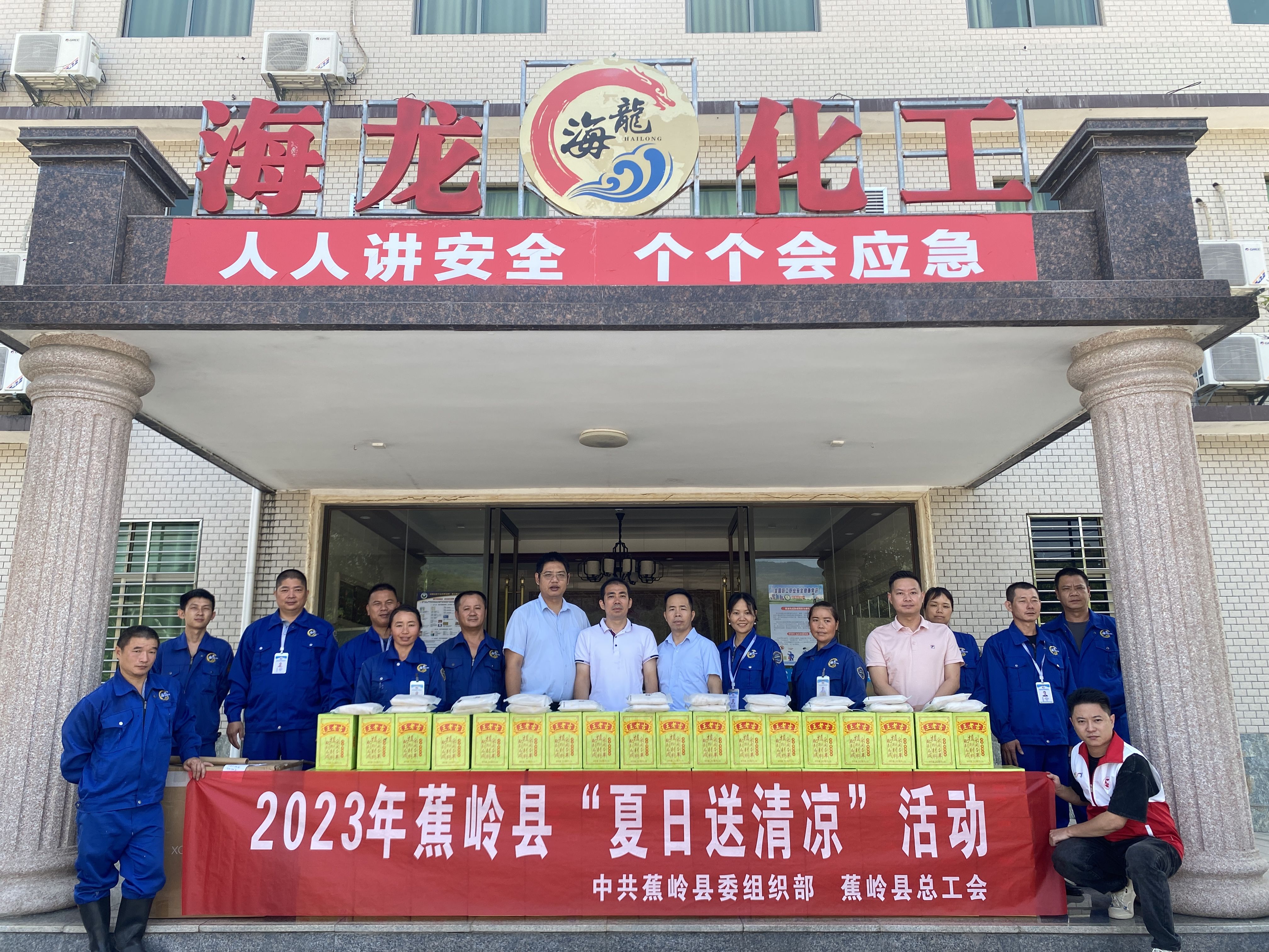 夏日炎炎,高溫來襲,自入夏以來,全國各地高溫預警不斷。為了確保職工平安度夏,保護高溫天氣下奮戰(zhàn)在一線的廣大職工身心健康,有效預防和控制職業(yè)性中暑事件,蕉嶺縣總工會常務副主席林敦權、權維部部長丘仕強等領導一行到海龍化工開展2023年蕉嶺縣“夏日送清涼”活動。